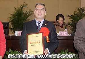 綠之韻集團榮獲2011年度“稅收貢獻獎”,成為園區(qū)百億企業(yè)重點扶持單位