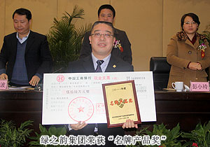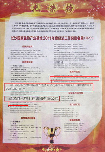 2012年2月28日,長沙國家生物產(chǎn)業(yè)基地經(jīng)濟工作會議在瀏陽市人民政府行政中心隆重召開。湖南省經(jīng)信委黨組成員、副主任殷林波,湖南省發(fā)改委黨組成員、總經(jīng)濟師楊世芳等各級領(lǐng)導(dǎo)出席會議并發(fā)表重要講話。會上,綠之韻集團榮獲“2011年度稅收貢獻獎”“名牌產(chǎn)品獎”“統(tǒng)計工作先進單位”多項殊榮;綠之韻集團員工陳英榮獲“統(tǒng)計工作先進個人”及“財務(wù)管理先進工作者”稱號;易利群榮獲“統(tǒng)計工作先進個人”稱號。綠之韻集團董事長胡國安出席領(lǐng)獎并接受產(chǎn)業(yè)基地下達的2012年目標管理任務(wù)書。