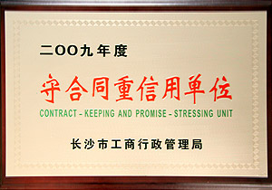 綠之韻集團榮獲2009年長沙市“守合同重信用單位”榮譽稱號