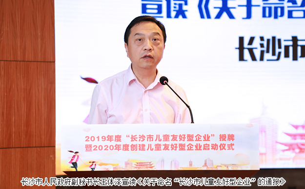 隨后,長(zhǎng)沙市自然資源和規(guī)劃局局長(zhǎng)馮意剛宣讀了《長(zhǎng)沙市兒童友好型企業(yè)創(chuàng)建十大指標(biāo)》文件;長(zhǎng)沙市人民政府副秘書(shū)長(zhǎng)王體澤宣讀了《關(guān)于命名“長(zhǎng)沙市兒童友好型企業(yè)”的通報(bào)》。綠之韻集團(tuán)等20家首批“長(zhǎng)沙市兒童友好型企業(yè)”授牌,并致以祝賀。