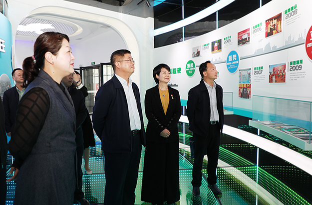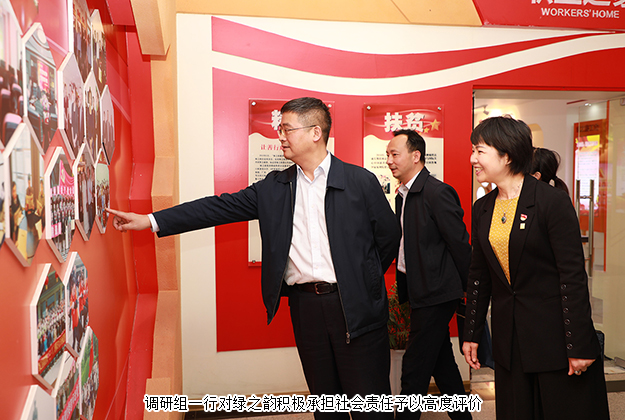 調研組一行先后參觀了綠之韻黨建文化教育基地和國際會議中心展廳。在黨建文化教育基地,中共長沙市委組織部副部長、兩新工委書記楊俊認真了解了綠之韻非公黨建工作情況,與董事總裁勞嘉、黨委書記劉云進行了詳細交流。黨委書記劉云介紹到:綠之韻是一家有著“綠體紅心”特質的企業(yè),始終將非公黨建工作置于發(fā)展戰(zhàn)略高度,自2006年成立黨支部,2013年獲批成立黨總支,2016年8月獲批成立黨委以來,堅持構建以集團黨組織為核心,以集團工會、公益基金會為主體,以三色(紅色、金色、綠色)建設為策略,注重紅色基因塑造的新時代非公黨建新生態(tài),實施“指導式”“責任式”“溫情式”管理,憑借著“正確領導踏實干,老板重視認真干,群眾支持加油干”的黨建工作理念,在全行業(yè)內創(chuàng)建了第一家黨建文化教育基地,形成了具有綠之韻特色的非公黨建工作品牌。調研組一行邊走邊看,對綠之韻近年來黨建工作的創(chuàng)新舉措和喜人成績給予了高度評價。