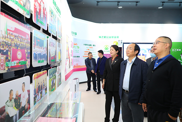 調(diào)研組一行首先參觀了綠之韻集團(tuán)新落成的國際會(huì)議中心多功能形象展示廳。展廳以綠之韻“水的精神”為貫穿構(gòu)想,運(yùn)用現(xiàn)代化、科技化、智能化的創(chuàng)新技術(shù)手段,全方位、多角度、深層次的向調(diào)研組一行生動(dòng)呈現(xiàn)了綠之韻十七年的創(chuàng)業(yè)歷史、企業(yè)文化、所獲表彰、黨建公益、產(chǎn)品科研、金融布局等企業(yè)發(fā)展全景。胡國安董事長圍繞企業(yè)歷程、產(chǎn)品研發(fā)、非公黨建、公益慈善和愿景規(guī)劃等方面的工作情況向調(diào)研組一行作了詳細(xì)匯報(bào)。多年來,綠之韻積極響應(yīng)省委省政府、市委市政府、園區(qū)號(hào)召,不斷加大科研投入,不斷深化“產(chǎn)學(xué)研”合作,先后與南京大學(xué)、湖南農(nóng)業(yè)大學(xué)、湖南省中醫(yī)藥大學(xué)、湖南中醫(yī)藥研究院等科研機(jī)構(gòu)、高等院校達(dá)成戰(zhàn)略合作,成立了產(chǎn)品專家委員會(huì),目前亦正在加快籌建綠之韻博士后科研工作站。在企業(yè)發(fā)展的同時(shí),綠之韻積極承擔(dān)社會(huì)責(zé)任,踴躍參與和傾情捐助了書香助學(xué)、關(guān)愛貧困母親、美麗鄉(xiāng)村、賑災(zāi)扶貧等100多項(xiàng)社會(huì)公益事業(yè),累計(jì)捐贈(zèng)款物7000多萬元。