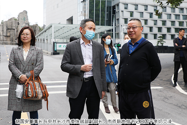 2020年3月24日,中共長沙市委常委、統(tǒng)戰(zhàn)部部長譚小平,市委統(tǒng)戰(zhàn)部副部長、市僑聯(lián)黨組書記王國平一行蒞臨綠之韻集團(tuán)調(diào)研指導(dǎo)。中共瀏陽市委常委、統(tǒng)戰(zhàn)部部長郭瑞,中共瀏陽市委常委、政法委書記戴武明,中共瀏陽市委統(tǒng)戰(zhàn)部副部長江涵,瀏陽經(jīng)開區(qū)黨工委委員、管委會(huì)副主任何六生陪同調(diào)研。湖南省政協(xié)委員、長沙市海外聯(lián)誼會(huì)常務(wù)副會(huì)長、香港長沙商會(huì)常務(wù)副會(huì)長、綠之韻集團(tuán)董事長胡國安,湖南省工商聯(lián)女商會(huì)常務(wù)副會(huì)長、瀏陽市工商聯(lián)副主席、綠之韻集團(tuán)董事總裁勞嘉,副總裁胡均安,黨委書記劉云等公司領(lǐng)導(dǎo)全程陪同。