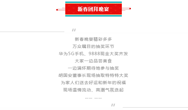 子年春到戶,鼠歲喜臨門。2020年1月17日,綠之韻集團2019年度員工總結表彰暨新春團拜會在瀏陽綠之韻國際大酒店成功舉行。會議以“奮斗的青春,屬你最美”為主題,對2019年的工作與成績進行總結和表彰,對2020年企業(yè)發(fā)展進行規(guī)劃和展望。綠之韻集團董事長胡國安、董事總裁勞嘉攜全體高管團隊、全體員工歡聚一堂,共賀新春,共敘情誼,共謀未來。