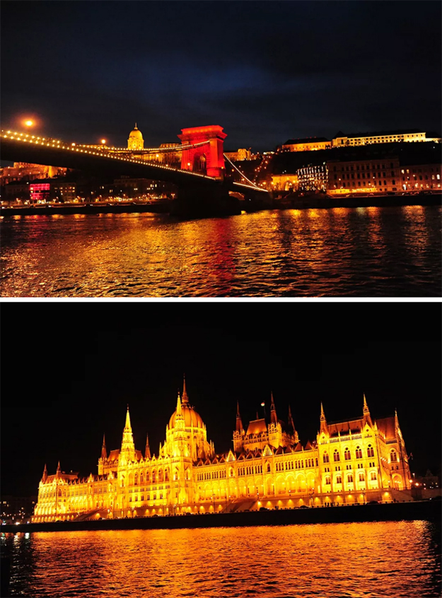 夜游藍(lán)色多瑙河,兩岸風(fēng)光如同畫卷徐徐展開,在綠之韻人一聲聲驚嘆中,便可感知它的浪漫與唯美。幾座大橋左手牽著布達(dá),右手挽著佩斯,讓這兩座中古小城再無罅隙,一同沉溺在,多瑙河多情的懷抱里。而多瑙河三鎮(zhèn)(山丹丹、維謝格拉德鎮(zhèn)、埃斯泰爾戈姆鎮(zhèn))的游覽,讓綠之韻人遇見了“一夜兩城”的奇觀——第一天陽光明媚下的多瑙河與第二天大雪紛飛的多瑙河,這是運(yùn)氣、是福氣,也是奇跡!
