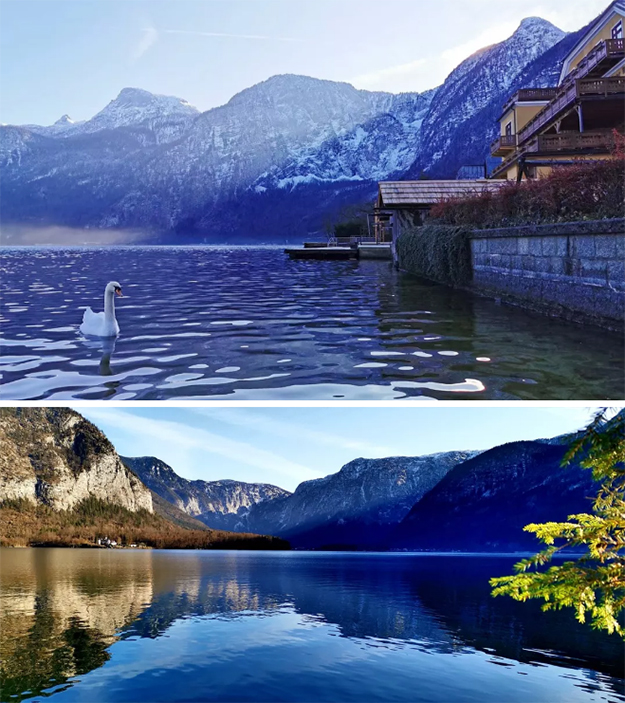 哈爾斯塔特,被譽(yù)為“世界最美的湖畔小鎮(zhèn)”。各式城堡競(jìng)相矗立,尖尖的塔頂欲入青空,似乎每個(gè)可愛的小屋里面,都有一個(gè)關(guān)于幸福的故事,步及之處,都是童話夢(mèng)中的國度。富有歷史韻味的古建筑和身后高高聳立的阿爾卑斯巍峨的雪山交相輝映,構(gòu)成了小鎮(zhèn)最完美的背景。真真如童話般的清幽而美麗,在暖暖的光照下,湖上泛起薄霧,緩緩飄移,潔白的天鵝在湖面徐徐游動(dòng),河岸則青翠艷紅、五彩斑斕,人間仙境不就如此!