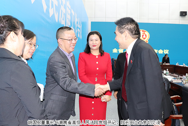 胡國(guó)安董事長(zhǎng)受邀參加湖南全省人民法庭工作會(huì)議,省高級(jí)人民法院黨組書記、院長(zhǎng)田立文出席并講話
