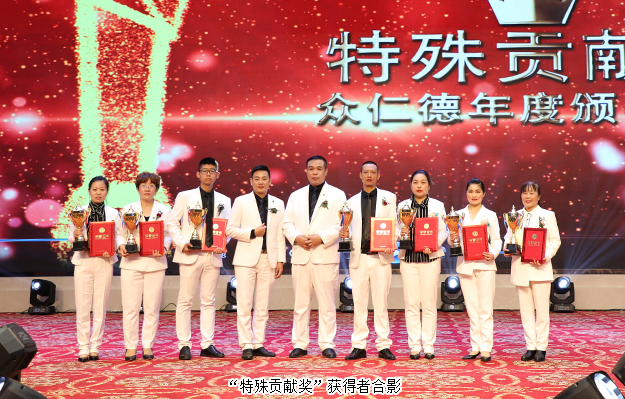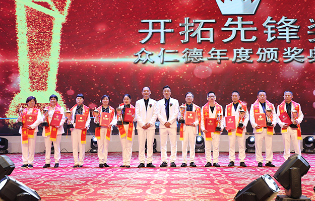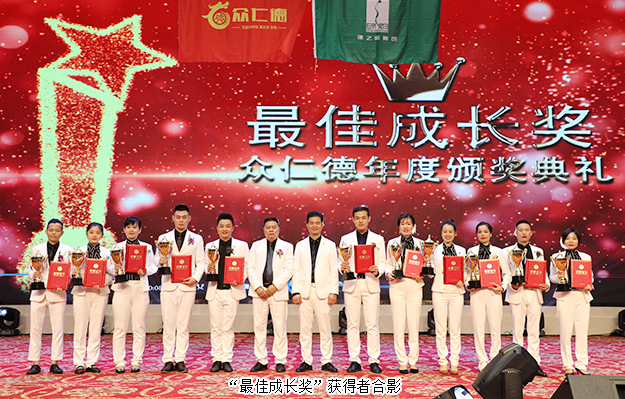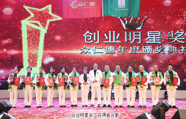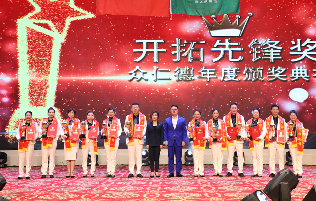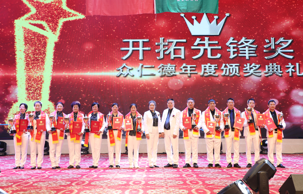 大會還舉行了盛大的頒獎儀式,為取得優(yōu)異成績的市場精英予以表彰?!伴_拓先鋒獎”“創(chuàng)業(yè)明星獎”“最佳成長獎”“特殊貢獻獎”“卓越領(lǐng)袖獎”等獎項依次頒發(fā)。綠之韻集團副總經(jīng)理梅其慧、市場管理中心業(yè)務(wù)總經(jīng)理曹兵、市場管理中心業(yè)務(wù)總監(jiān)譚紅和綠之韻眾仁徳系統(tǒng)創(chuàng)始人孟鈺潔與眾仁徳優(yōu)秀領(lǐng)導人上臺為獲獎的優(yōu)秀精英頒獎并送上祝福。