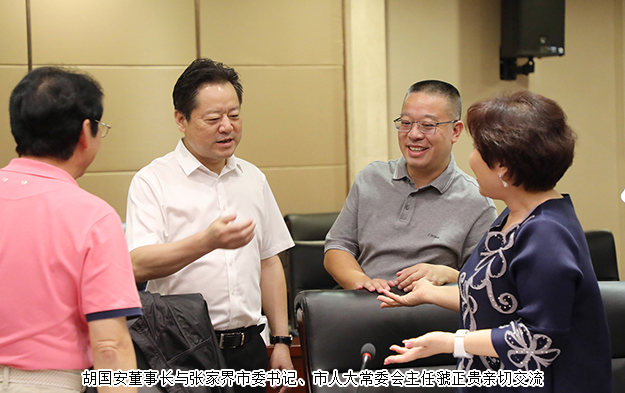 胡國(guó)安董事長(zhǎng)陪同香港金利豐金融集團(tuán)主席朱沃裕、總裁朱李月華(朱太)考察張家界