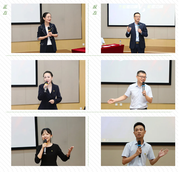 今年5-6月,綠之韻集團組織部分員工參加了“魅力講師訓(xùn)練營”演講與口才培訓(xùn)活動。經(jīng)過為期兩個月的專業(yè)訓(xùn)練,學(xué)員們成功畢業(yè)。分享匯報會伊始,這群“會說話”的年輕學(xué)員們就為大家?guī)砹艘粓鼍实霓q論賽。