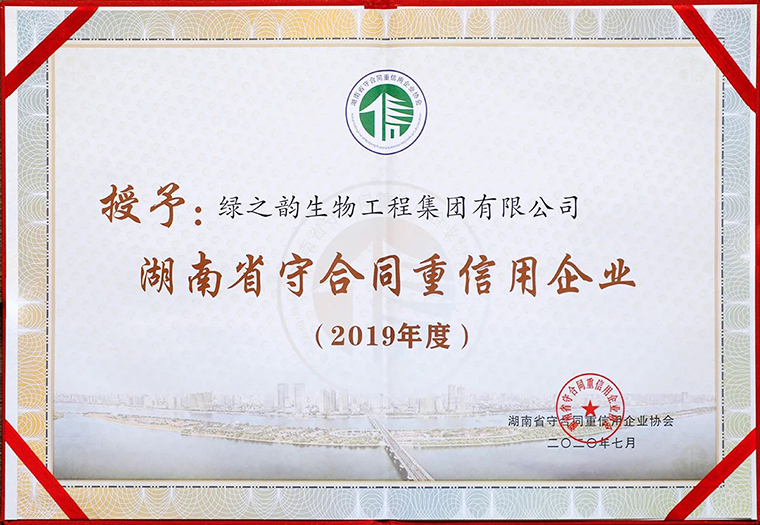 以誠取信,以信立譽。近日,憑借完善的企業(yè)誠信建設(shè)體系與科學(xué)的企業(yè)管理水平,經(jīng)過層層申報、嚴格評審以及通過湖南日報、信用湖南網(wǎng)、湖南省守合同重信用企業(yè)協(xié)會官網(wǎng)等面向社會公示,綠之韻集團再次成功獲評2019年度湖南省“守合同重信用”企業(yè)榮譽稱號。