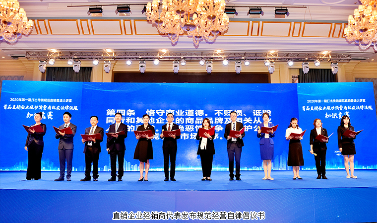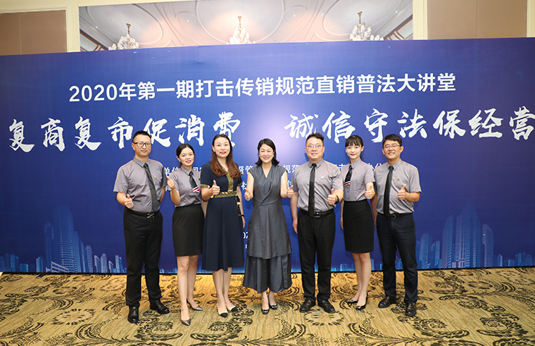 為扎實做好“六穩(wěn)”工作,全面落實“六?!比蝿眨?月20日,以“復商復市促消費 誠信守法保經(jīng)營”為主題的2020年第一期打擊傳銷規(guī)范直銷普法大講堂活動在重慶市舉辦。本次普法宣傳活動由國家市場監(jiān)督管理總局規(guī)范直銷與打擊傳銷辦公室指導,中國消費者報社承辦、重慶市市場監(jiān)督管理局協(xié)辦。市場監(jiān)管總局規(guī)范直銷與打擊傳銷辦公室、中國消費者報社、重慶市市場監(jiān)督管理局主要負責同志、重慶市渝北區(qū)人民政府有關負責同志參加了本次活動。綠之韻集團董事、總裁勞嘉受邀參加活動并接受了采訪,綠之韻集團市場管理中心業(yè)務總經(jīng)理曹兵帶領公司知識競賽代表隊參加了本次普法宣傳活動。