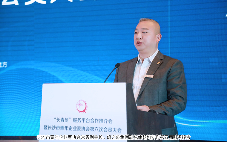 2020年10月27日,“長青創(chuàng)”服務(wù)平臺合作推介會暨長沙市青年企業(yè)家協(xié)會第六次會員大會在長沙召開。共青團(tuán)長沙市委黨組書記、書記葉妙,黨組成員、副書記趙雪峰,副書記劉飛米,市青企協(xié)負(fù)責(zé)同志、相關(guān)部門領(lǐng)導(dǎo)、各界特邀人士、青年企業(yè)家會員參加會議。長沙市青年企業(yè)家協(xié)會常務(wù)副會長、綠之韻集團(tuán)副總裁胡均安出席會議并作財務(wù)工作報告。