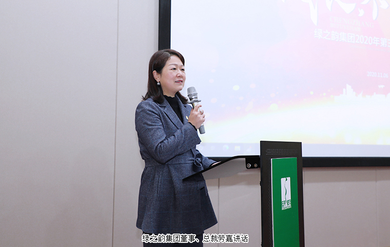 隨后,綠之韻集團(tuán)董事、總裁勞嘉講話。她表示,今年是綠之韻成立十八周年,能夠一路走下來,并取得各項(xiàng)成績(jī),得益于這些五年、十年獎(jiǎng)項(xiàng)獲得者的相信、堅(jiān)持和奉獻(xiàn),得益于在座各位高管和員工的不懈拼搏和辛勤付出。她從重塑崗位和職業(yè)價(jià)值、增強(qiáng)工作有效性、提升解決問題能力、提振未來發(fā)展信心等四個(gè)方面娓娓道來,語重心長(zhǎng)。她強(qiáng)調(diào),綠之韻可以給到每一位員工發(fā)展的舞臺(tái),只要我們沉下心來學(xué)習(xí),不斷創(chuàng)新工作模式,不斷提高每一個(gè)人解決實(shí)際問題的能力,當(dāng)我們足夠優(yōu)秀,我們就能在這里實(shí)現(xiàn)每一個(gè)人的自身價(jià)值。這次疫情雖然對(duì)我們的企業(yè)有一定的影響,但是從國(guó)家層面來看,隨著《“健康中國(guó)2030”規(guī)劃綱要》的發(fā)布,當(dāng)前“國(guó)民健康”的重視程度前所未有,給我們繼續(xù)投身大健康產(chǎn)業(yè)一劑“強(qiáng)心劑”。從公司層面來看,目前,公司各個(gè)市場(chǎng)板塊在調(diào)整和融合,向著好的方向發(fā)展?!拔鹜蛱斓目嚯y輝煌,無愧今天的使命擔(dān)當(dāng),不負(fù)明天的偉大夢(mèng)想?!焙笠咔闀r(shí)代,明年或許會(huì)更艱難,但大家要對(duì)企業(yè)未來的發(fā)展充滿信心。希望可以看到更多的員工走上公司五年、十年的榮耀舞臺(tái),肩負(fù)使命、創(chuàng)造輝煌,不負(fù)青春、不負(fù)遇見、不負(fù)夢(mèng)想。