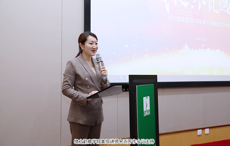 大會(huì)以“成長(zhǎng),不負(fù)遇見”為主題,在全體員工宣讀《綠之韻工作宣言》的誦讀聲中拉開序幕。為了保持綠之韻的創(chuàng)造力和創(chuàng)新力,第三季度綠之韻再添新員工,為企業(yè)未來發(fā)展注入了新鮮的血液。會(huì)上為王洪波、李思、羅瓊蕾、皮娟、邱健美、李海鵬等新員工舉行了隆重的歡迎儀式。綠之韻集團(tuán)總經(jīng)理劉維利就2020年前三個(gè)季度的市場(chǎng)工作進(jìn)行了回顧和總結(jié),并就接下來第四季度的市場(chǎng)工作進(jìn)行了周密的安排和部署。