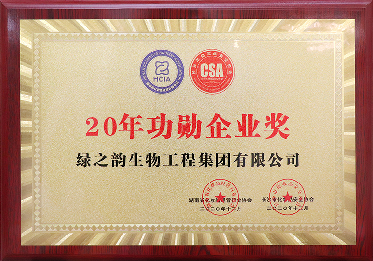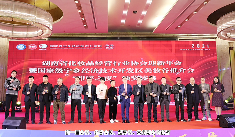 當(dāng)晚,還舉行了湖南省化妝品經(jīng)營(yíng)行業(yè)協(xié)會(huì)迎新年會(huì)。湖南省化妝品經(jīng)營(yíng)行業(yè)協(xié)會(huì)新一屆會(huì)長(zhǎng)、名譽(yù)會(huì)長(zhǎng)、監(jiān)事長(zhǎng)、常務(wù)副會(huì)長(zhǎng)等領(lǐng)導(dǎo)班子成員上臺(tái)祝酒。晚宴現(xiàn)場(chǎng)為本年度行業(yè)內(nèi)表現(xiàn)突出、取得優(yōu)異成績(jī)的會(huì)員企業(yè)頒獎(jiǎng)。綠之韻生物工程集團(tuán)有限公司獲評(píng)“20年功勛企業(yè)”榮譽(yù)稱號(hào)。