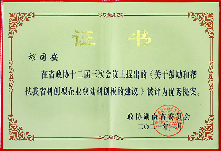 作為一名三屆省政協(xié)“老委員”,胡國(guó)安委員廣泛傾聽社情民意、積極參與各種形式的調(diào)研活動(dòng),為省市實(shí)體經(jīng)濟(jì)發(fā)展獻(xiàn)計(jì)獻(xiàn)策。自履職以來(lái),他積極參政議政,共計(jì)提交了近40份有價(jià)值的政協(xié)提案,其中所提交的《關(guān)于加快我省電業(yè)園建設(shè)的建議》《關(guān)于推進(jìn)“互聯(lián)網(wǎng)+精準(zhǔn)扶貧”的建議》等提案,引起媒體廣泛關(guān)注。2010年,被省政協(xié)授予“優(yōu)秀政協(xié)委員”光榮稱號(hào),2016年《關(guān)于推進(jìn)“互聯(lián)網(wǎng)+精準(zhǔn)扶貧”的建議》提案榮獲省政協(xié)“優(yōu)秀提案”表彰。2018年,代表致公黨湖南省委提交的《關(guān)于主動(dòng)對(duì)接融入粵港澳大灣區(qū),加快推進(jìn)長(zhǎng)沙空鐵經(jīng)濟(jì)示范區(qū)的建議》提案,獲中共湖南省委書記許達(dá)哲重要批示。