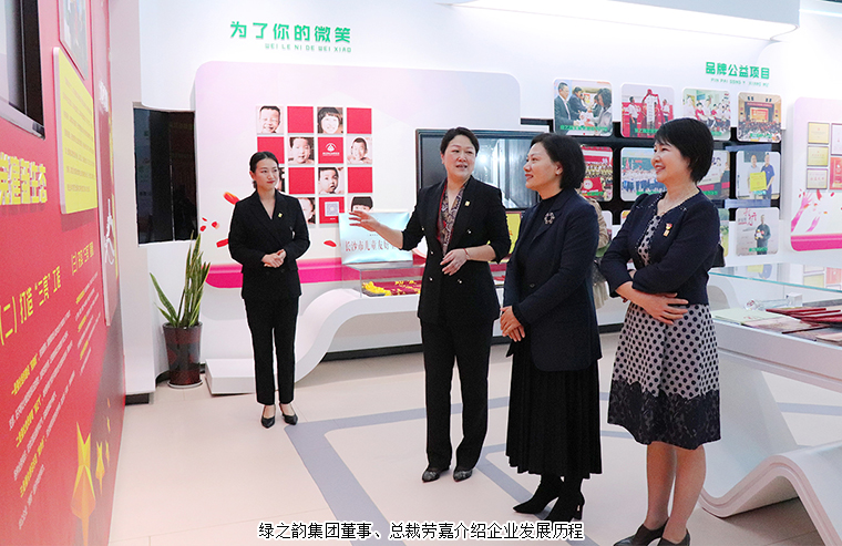 隨后,湖南省婦聯(lián)副主席盧妹香一行來(lái)到綠之韻國(guó)際會(huì)議中心多功能展廳實(shí)地走訪和參觀,勞嘉總裁就企業(yè)基本情況、生產(chǎn)經(jīng)營(yíng)、文化建設(shè)以及黨建公益等方面的工作情況做了詳細(xì)介紹。湖南省婦聯(lián)副主席盧妹香對(duì)綠之韻多年來(lái)在“關(guān)愛(ài)女性 崇德向善”方面的積極作為以及具有綠之韻品牌特色的“綠體紅心”黨建工作等給予了高度贊賞。她指出,綠之韻集團(tuán)廣泛開(kāi)展品牌公益活動(dòng),關(guān)注女性群體的積極作為傳遞了溫暖,為社會(huì)經(jīng)濟(jì)事業(yè)發(fā)展貢獻(xiàn)出巾幗力量,也在全社會(huì)掀起了一股關(guān)愛(ài)女性的良好風(fēng)氣。希望綠之韻在未來(lái)的工作中繼續(xù)堅(jiān)定初心,凝聚女性力量,切實(shí)發(fā)揮榜樣表率作用,為全面建設(shè)社會(huì)主義現(xiàn)代化國(guó)家新征程作出更多積極貢獻(xiàn)!