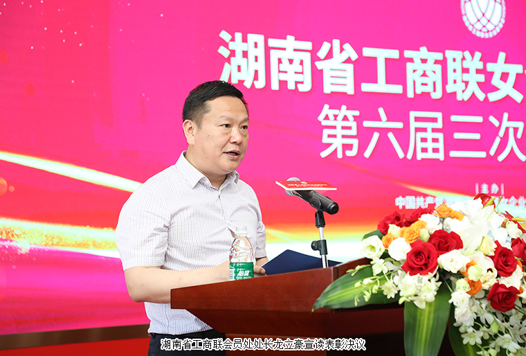 隨后,湖南省工商聯(lián)會員處處長龍立豪宣讀表彰決議,對在新冠肺炎疫情期間表現(xiàn)突出的先進集體、先進個人、先進基層黨組織、優(yōu)秀黨員、優(yōu)秀會長、優(yōu)秀會員、優(yōu)秀團體會員進行了表彰。綠之韻集團榮獲“湖南省工商聯(lián)女企業(yè)家商會抗疫先進集體”,綠之韻集團董事總裁勞嘉榮獲“湖南省工商聯(lián)女企業(yè)家商會優(yōu)秀會長”。