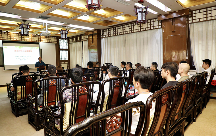 “岳麓書院作為中國歷史上四大書院之一,歷經(jīng)千年而弦歌不絕,學(xué)脈延綿……”在講解員的解說中,綠之韻家人們來到岳麓書院參觀,了解岳麓書院演變延續(xù)過程及湖湘文化典故,感受到了岳麓書院作為千年學(xué)府的獨(dú)特魅力和文化底蘊(yùn)。湖南大學(xué)岳麓書院教授陳力祥在岳麓書院的文昌閣為大家?guī)怼逗嫖幕c精神》的主題演講,讓在場的綠之韻家人們深受湖湘文化的精神洗禮。
