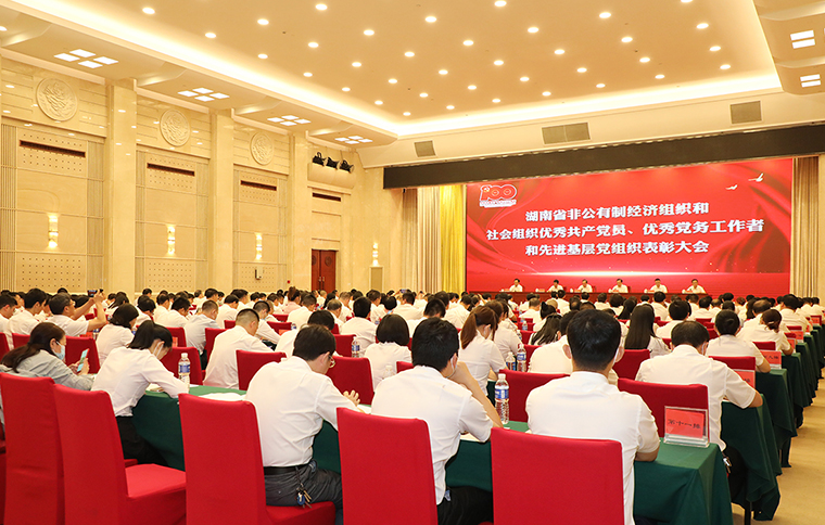 中共湖南省委組織部副部長陳瀟主持會議。大會伊始,全體起立,共唱國歌。中共湖南省委兩新工委專職副書記羅纘吉宣讀表彰文件。大會表彰一批湖南省非公有制經(jīng)濟(jì)組織和社會組織優(yōu)秀共產(chǎn)黨員、優(yōu)秀黨務(wù)工作者和先進(jìn)基層黨組織。與會領(lǐng)導(dǎo)為獲獎代表頒發(fā)獎牌和榮譽(yù)證書。綠之韻集團(tuán)黨委書記劉云榮獲“優(yōu)秀黨務(wù)工作者”榮譽(yù)。