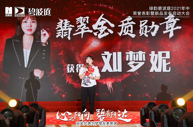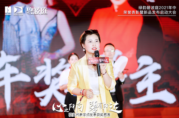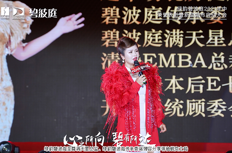 綠之韻集團(tuán)董事、總裁勞嘉為大會(huì)致辭。她首先代表集團(tuán)向奮斗在市場(chǎng)一線的每一位碧波庭家人們致以熱烈的歡迎和誠(chéng)摯的問(wèn)候。今年是偉大的中國(guó)共產(chǎn)黨成立100周年,是碧波庭創(chuàng)立27周年、也是綠之韻和碧波庭牽手11周年,更是集團(tuán)公司“第四個(gè)五年規(guī)劃”即將收官的關(guān)鍵之年。十多年來(lái),綠之韻集團(tuán)始終朝著“建百年企業(yè)、創(chuàng)世界名牌”的企業(yè)初心不懈奮斗。同樣,綠韻碧波庭自創(chuàng)立以來(lái)始終秉承著“用實(shí)干做實(shí)業(yè)”的品牌初心。近年來(lái),微商、社交電商、直播帶貨等對(duì)行業(yè)的沖擊越來(lái)越大,為應(yīng)對(duì)這場(chǎng)變革和沖擊,集團(tuán)公司和碧波庭將從產(chǎn)品研發(fā)、教育培訓(xùn)、品牌推廣等方面給予市場(chǎng)最大的支持和幫扶,為綠韻碧波庭的家人們打造更加穩(wěn)定、優(yōu)質(zhì)的事業(yè)平臺(tái)。未來(lái),她將與各位綠之韻家人們共同開(kāi)啟綠韻碧波庭的事業(yè)藍(lán)圖,共同去實(shí)現(xiàn)每一位綠之韻家人們的夢(mèng)想,共同堅(jiān)守這份初心,堅(jiān)守這份情誼,結(jié)緣碧波庭,圓夢(mèng)綠之韻。最后,她預(yù)祝本次大會(huì)取得圓滿成功。