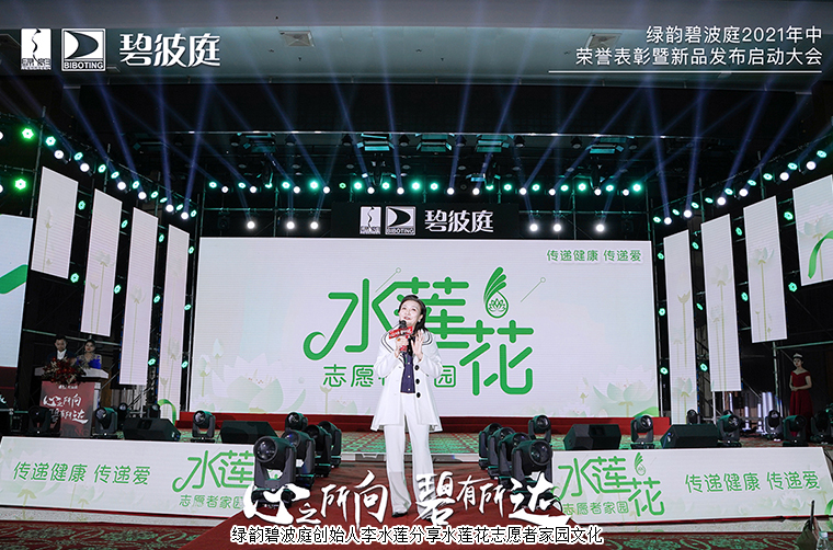 會(huì)議現(xiàn)場(chǎng),綠韻碧波庭創(chuàng)始人李水蓮分享了水蓮花志愿者家園文化。2011年,水蓮花志愿者家園在上海正式成立、以中華傳統(tǒng)文化為基礎(chǔ),以關(guān)愛(ài)女性掃除乳盲為根基,在全國(guó)各地舉辦關(guān)愛(ài)女性的公益講座,不斷喚醒女性健康對(duì)社會(huì)的重要性。我們提出了“每周三,每周三次,每次30分鐘”的健康理念。27年來(lái),綠韻碧波庭承載著數(shù)以萬(wàn)計(jì)家人的愛(ài)與夢(mèng)想,堅(jiān)持用實(shí)在做實(shí)業(yè),堅(jiān)持“寧鑿一口井,不挖10個(gè)洞”。這一路走來(lái)非常不容易,再次感謝各位家人的付出、支持與包容。吳孟超先生曾說(shuō):“這世界不缺乏專(zhuān)家,缺的是肯把自己給出去的人?!痹谧母魑痪褪且蝗涸敢獍炎约航o出去,愿意自己付出的人。疫情期間,有許多公司不見(jiàn)了,有很多團(tuán)隊(duì)散掉了,但是綠韻碧波庭的團(tuán)隊(duì)依然向上蓬勃發(fā)展。我深信,只要我們團(tuán)結(jié)一致,朝著同一個(gè)目標(biāo)不斷付出、不斷努力,我們的團(tuán)隊(duì)會(huì)越來(lái)越穩(wěn)健,我們的明天一定會(huì)更加美好。