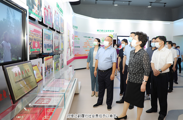 烏蘭一行參觀了綠之韻國(guó)際會(huì)議中心多功能形象展示廳。胡國(guó)安董事長(zhǎng)就企業(yè)發(fā)展歷程、非公黨建、生產(chǎn)經(jīng)營(yíng)、產(chǎn)品研發(fā)、公益慈善等方面的工作向調(diào)研組一行做了介紹。多年來(lái),綠之韻不斷加大科研投入,深化“產(chǎn)學(xué)研”合作,擁有湖南省藥食同源功能性食品工程技術(shù)研究中心1個(gè)、長(zhǎng)沙市藥食兩用資源高效提取及綜合開(kāi)發(fā)利用技術(shù)創(chuàng)新中心1個(gè)、長(zhǎng)沙市企業(yè)技術(shù)中心1個(gè),博士后科研流動(dòng)站協(xié)作研發(fā)中心1個(gè),形成了綠之韻“一站三中心”的人才培養(yǎng)與科研創(chuàng)新平臺(tái)的戰(zhàn)略布局。在振興實(shí)業(yè)的同時(shí),綠之韻積極承擔(dān)企業(yè)公民責(zé)任,面向社會(huì)累計(jì)捐款捐物7600多萬(wàn)元。綠之韻在產(chǎn)品研發(fā)、非公黨建、公益事業(yè)、鄉(xiāng)村振興等方面的工作令調(diào)研組一行印象深刻。