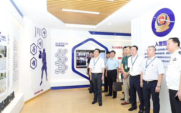 2019年7月17日,長(zhǎng)沙市公安局特邀形象監(jiān)督員、綠之韻集團(tuán)副總裁胡均安陪同長(zhǎng)沙市公安局黨委委員、副局長(zhǎng)徐波躍,黨委委員、政治部主任陳定佳;特巡警支隊(duì)黨委書記、支隊(duì)長(zhǎng)歐陽偉沙,市公安局機(jī)關(guān)紀(jì)委書記王海清等一行赴長(zhǎng)沙市公安局特巡警支隊(duì)調(diào)研。