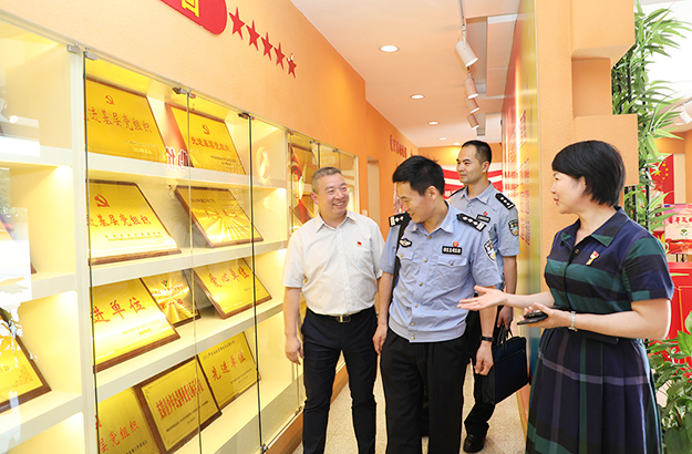 2019年6月28日,長(zhǎng)沙市公安局機(jī)關(guān)紀(jì)委書記王海清、瀏陽(yáng)市局督察大隊(duì)副大隊(duì)長(zhǎng)尋延亮、瀏陽(yáng)經(jīng)開區(qū)公安分局副局長(zhǎng)彭治國(guó)、瀏陽(yáng)市洞陽(yáng)派出所所長(zhǎng)朱慶超一行蒞臨綠之韻集團(tuán)調(diào)研指導(dǎo)。長(zhǎng)沙市公安局特邀形象監(jiān)督員、綠之韻集團(tuán)副總裁胡均安,綠之韻集團(tuán)黨委書記劉云,黨委副書記許達(dá)仲等陪同調(diào)研。