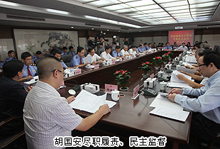 據(jù)了解,湖南省優(yōu)秀政協(xié)委員、綠之韻集團董事長胡國安于2014年5月7日正式當(dāng)選省政協(xié)派駐省工商行政管理局(首批聘用)民主監(jiān)督員后,先后參與“應(yīng)邀參加派駐單位的有關(guān)會議和活動,對派駐單位相關(guān)工作開展視察、調(diào)研和走訪,收集、了解和反映社情民意,監(jiān)督省政協(xié)建議案、提案的辦理落實情況”等一系列活動,為湖南省工商局各項工作的推進提出了合理化意見和建議。調(diào)研期間,胡國安董事長在與湖南省政協(xié)主席陳求發(fā)、湖南省人民政府副省長盛茂林交談時表示,今后將不斷加強自身學(xué)習(xí),多聯(lián)系、多交流、多溝通,遵循“懂行、明責(zé)、知情”六字訣,努力做組織放心、派駐單位歡迎、人民群眾滿意的監(jiān)督員。