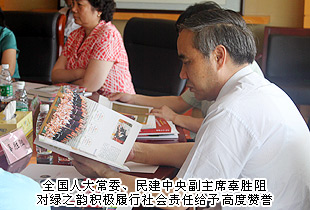 全國人大常委、全國人大財經委員會副主任、民建中央副主席、著名經濟學家辜勝阻認真聽取并記錄了胡國安董事長的匯報內容,對綠之韻集團的經營理念、產品研發(fā)、非公黨建和黨的群眾路線教育實踐活動成果給予了充分認可和高度贊譽;對綠之韻集團在經濟發(fā)展大環(huán)境下積極轉型;對綠之韻情系民生、心憂天下,產業(yè)扶貧,教育扶貧以及每年度向社會發(fā)布一本《企業(yè)社會責任報告》的成功做法表示出濃厚興趣和高度贊譽。