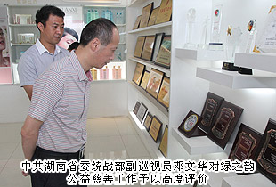 2014年7月25日,中共湖南省委統(tǒng)戰(zhàn)部副巡視員鄧文華、經(jīng)濟處副處長陳勝一行蒞臨綠之韻集團考察指導。