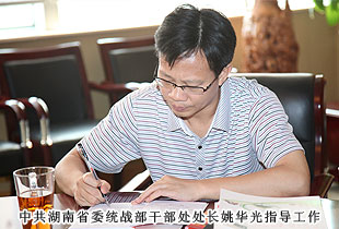 為了更好引導(dǎo)非公有制企業(yè)又好又快發(fā)展,破解企業(yè)發(fā)展中的瓶頸和難題,迅速融入“四化兩型”戰(zhàn)略,為湖南經(jīng)濟(jì)社會發(fā)展作出貢獻(xiàn),2013年9月9日,中共湖南省委統(tǒng)戰(zhàn)部常務(wù)副部長譚平、中共湖南省委統(tǒng)戰(zhàn)部干部處處長姚華光一行蒞臨綠之韻集團(tuán)考察調(diào)研。本次考察調(diào)研以中共湖南省委統(tǒng)戰(zhàn)部、省工商聯(lián)聯(lián)合發(fā)起的“萬企聯(lián)村?共同發(fā)展”活動為載體,深入調(diào)研了綠之韻集團(tuán)的經(jīng)營現(xiàn)狀。綠之韻集團(tuán)董事長胡國安、綠之韻集團(tuán)市場營銷中心(中國區(qū))副總經(jīng)理諶獻(xiàn)軍、綠之韻集團(tuán)黨總支書記許達(dá)仲等全程陪同調(diào)研。